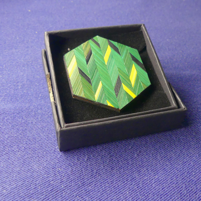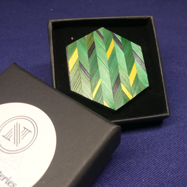 Un bijou artisanal raffiné, parfait pour les amateurs de design contemporain, de mode éthique et de marqueterie d’art. ✨