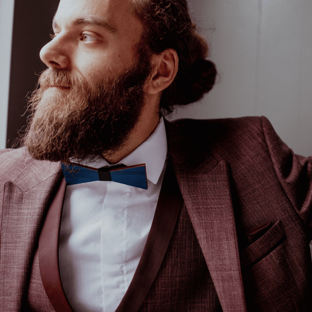 Apportez une touche dâoriginalitĂ© et de raffinement Ă votre tenue avec ce nĆud papillon unique, façonnĂ© Ă la main en marqueterie de paille bleue. đŸâš