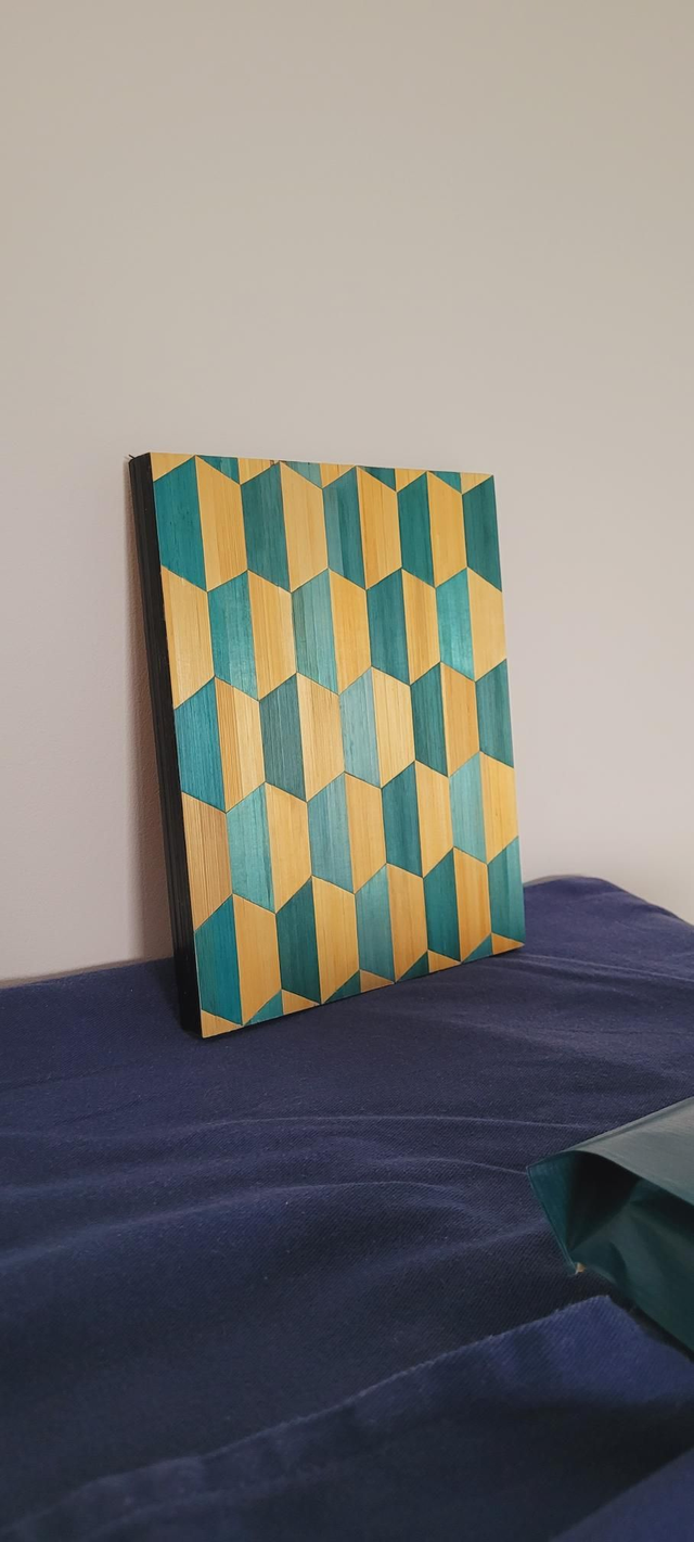 Une Ćuvre murale Ă la fois moderne, naturelle et raffinĂ©e, idĂ©ale pour les passionnĂ©s de design gĂ©omĂ©trique et dâartisanat dâart français. âš