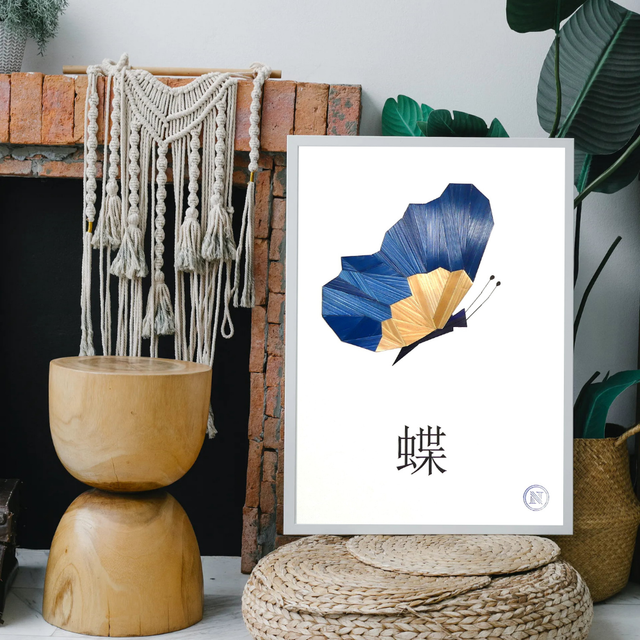 Ce papillon incarne la grâce, la transformation et la poésie. Le bleu profond apporte une note apaisante et poétique à cette pièce décorative d’exception. Le cadre en aluminium noir est inclus dans le prix.