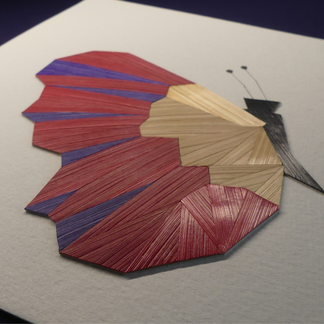 Ce papillon rouge est réalisé entièrement à la main en marqueterie de paille. Ses ailes délicatement dessinées révèlent de subtils reflets irisés, grâce à la paille de seigle, matériau naturel et vivant, qui capte la lumière comme la soie. ✨